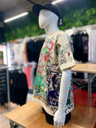 The Godzilla x Master T-Shirt is truly a limited edition with only 1 being created. The shirt features a selection of Blind Maggot's 100-plus designs from the last 12 months of the brand. Embroidered and hand screen printed in our Newbury studio on a heavyweight organic cotton, oversized T-shirt with a drop shoulder in size large. This shirt is a one of a kind.
